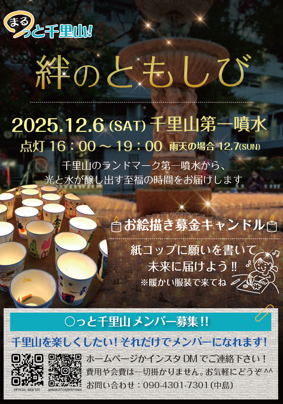 2025年12月6日(土)の夕方から夜にかけて、千里山の噴水にキャンドルを浮かべます